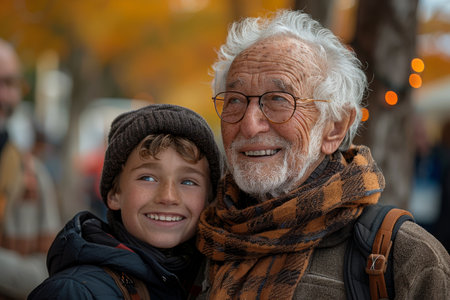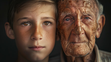 Portrait of an elderly man and a child. Close-up