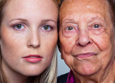 portait of a young and an old woman. juxtaposition.