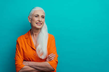 Beautiful senior woman posing on a photoshooting. Concept about lifestyle and seniority