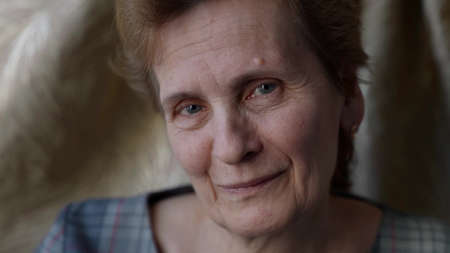 charming granny is smiling and looking at camera friendly, portrait of old pretty woman indoors