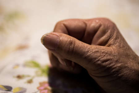 A closeup shot of a wrinkled fist of an elderly Chinese female