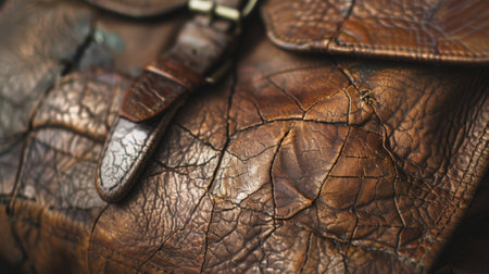 This detailed close-up reveals the story of time etched into a piece of weathered leather.