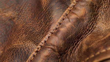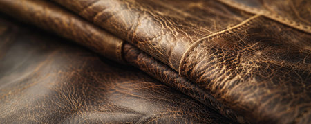 Close-Up of Luxurious Brown Leather Textured Detail, Soft Folds, and Fine Stitching.