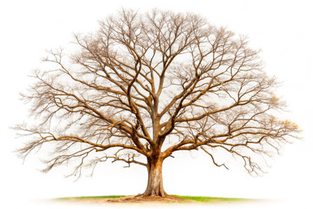Solitary oak tree with lush green foliage on white background, nature and tranquility concept