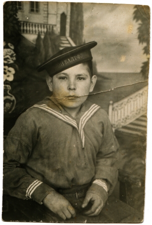 USSR - CIRCA 1947 A teenage in the form of the Baltic Fleet sailors, Krasnoyarsk, circa 1947