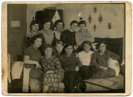 USSR - CIRCA 1939 A group of girls Medical University students in a dorm room, Simferopol, Crimea, circa February 18, 1939