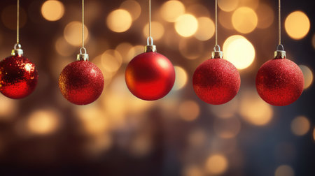 Generative AI Row of bright red and silver Christmas ornaments, perfect for creating a festive holiday scene ::1 shining, merry decorations, ideal for holiday ambiance
