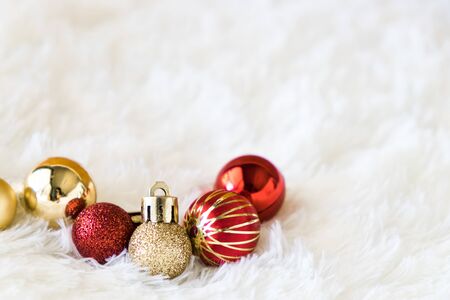 in the frame.During the winter months of December, a grand festival at the end of the year, golden and red balls gifts are adorned decoration at the green merry Christmas pine tree more beautiful.