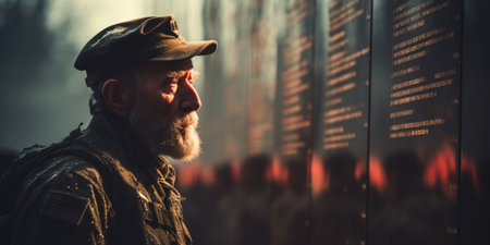 Reflective veteran with military memorabilia, embodying the enduring legacy of military service.