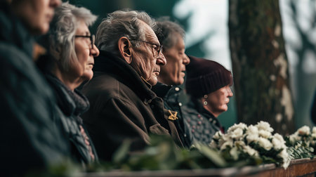 Images of solemn moments at a funeral: A tribute to remembrance. Concept Funeral, Mourning, Remembering, Sadness, Tribute