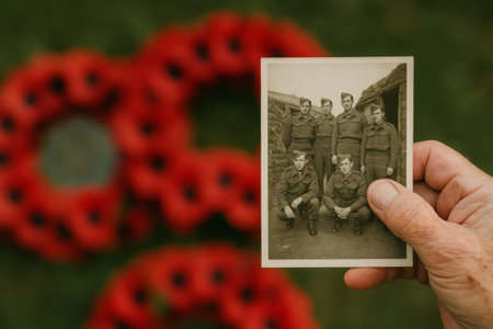 Armistice Remembrance Day concept with vintage soldier photo and poppies, AI Generated