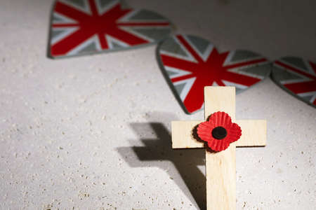 Armistice Remembrance Day with Union Jack and poppy, concept of tribute, background, AI Generated