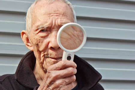 The white Hair Old people who Holding a magnifying glass