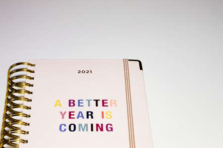 A better year Agenda 2021. Concept of positivity better year incoming. Empty copy space area white background
