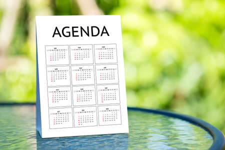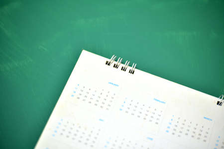 close up of calendar on the green table, planning for business meeting or travel planning concept