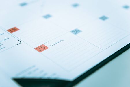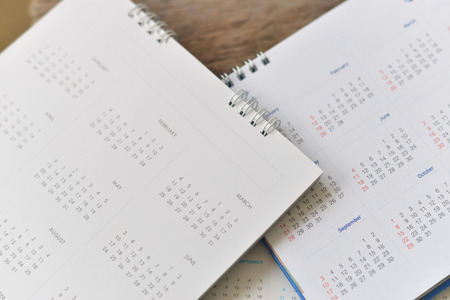 close up of calendar on the table, planning for business meeting or travel planning concept