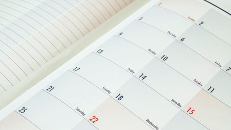 Close up calendar page dates abstract blurred background business planning appointment meeting concept