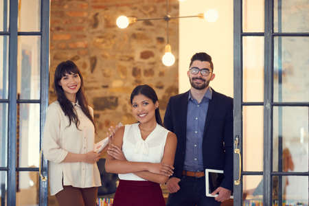 The business world better be ready for us. Portrait of a group of businesspeople standing in an office.