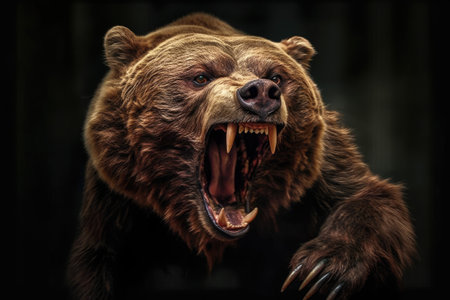 Image of side profile a ferocious brown bear roared gothic. Wildlife. Animals. Illustration. Generative AI.