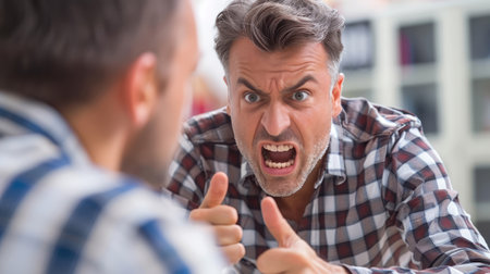 A man in a heated argument displays intense emotions, pointing aggressively. His facial expression shows rage and frustration during the confrontation.