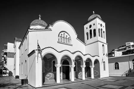 Neo-Byzantine orthodox church in the city of Rethymnon on the island of Crete, black and white