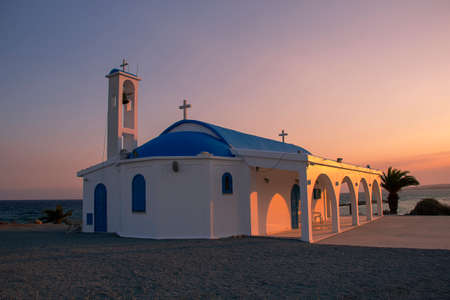 Beautiful little Greek chapel at sunset on the island of Crete - Greece.