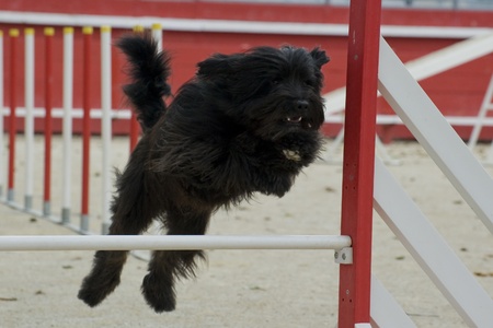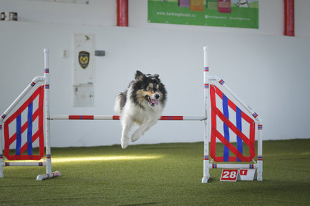 Dog is jumping over the hurdles. Amazing day on Czech agility competition.