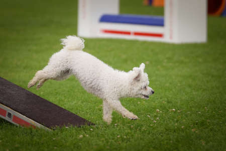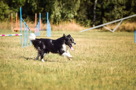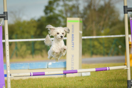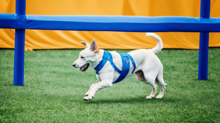 Photo of an elegant dog participating in a canine agility