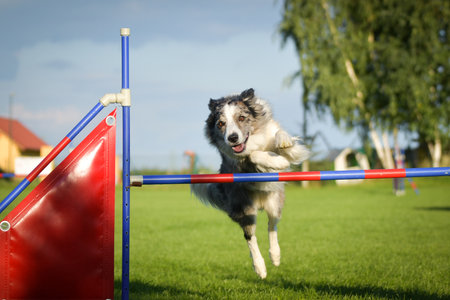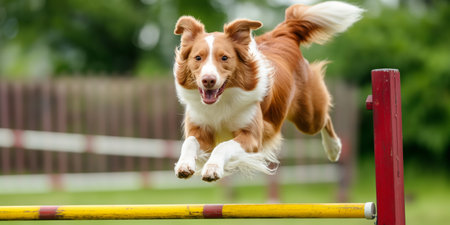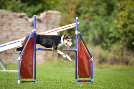 Energetic Dog Jumping Over Obstacle in Agility Training Course.