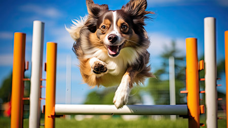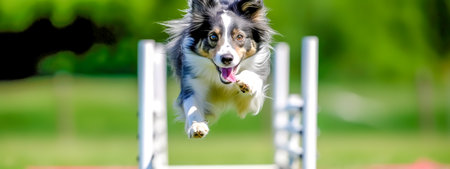 agility sport. the dog runs over obstacles, banner, made with Generative AI