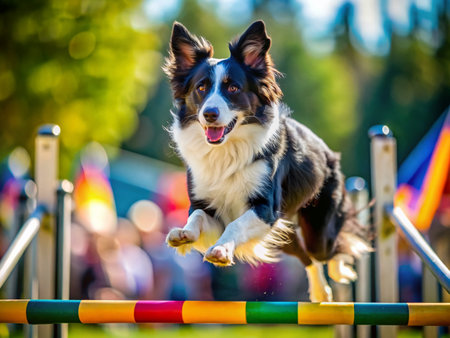 Border Collie Agility Competition: Dynamic Dog in Action with Bokeh Effect