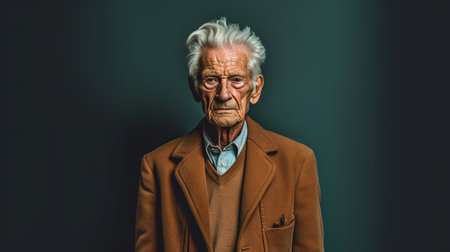 Portrait of an old man in a brown jacket on a black background