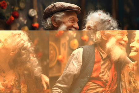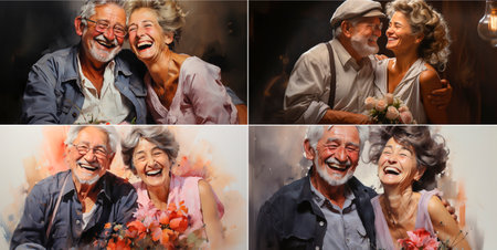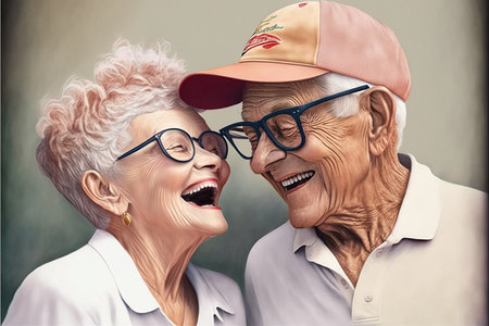 Senior couple smiling. Smile emotion illustration. Generative AI art