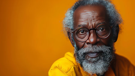 Portrait of an African-American man with glasses on a yellow background.