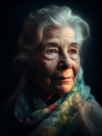 Portrait of an elderly woman on a dark background. Toned.