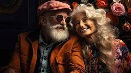 Senior couple enjoying time together. Generative AI illustration.