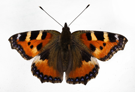 The small tortoiseshell, Aglais urticae (family Nymphalidae), a butterfly, 50 years old specimen from butterfly collection, upper side.