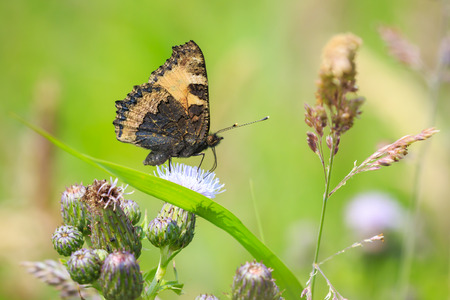 Small tortoiseshell (Aglais urticae) butterfly on thistle
