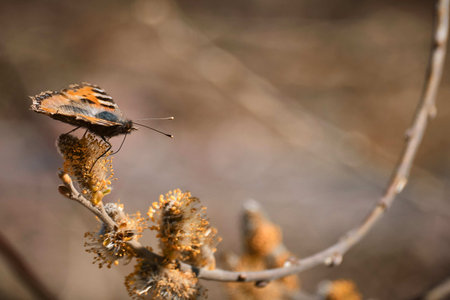 Nymphalis polychloros. The butterfly flew into the clearing along with the warmth of spring.