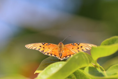 Close up shot of Gulf fritillary butterfly at Oklahoma