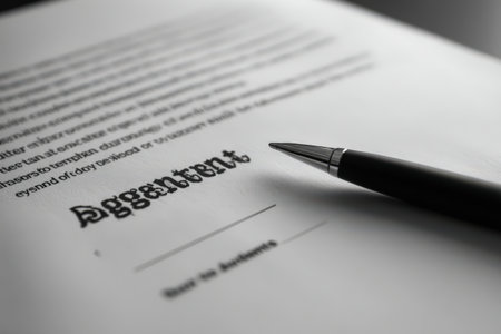 Close-up of a formal agreement document featuring ornate lettering and a black pen, representing professionalism and the importance of legal contracts in business