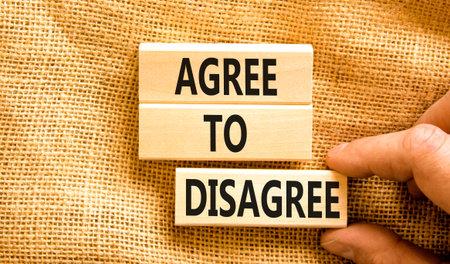 Agree to disagree symbol. Concept words Agree to disagree on beautiful wooden block. Businessman's hand. Beautiful canvas background. Business and agree to disagree concept. Copy space.