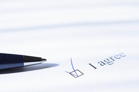 Agree Check boxes on the white sheet. Selective focus on the Agree box