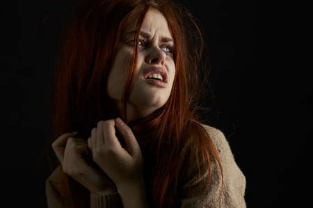 scared upset woman with bruises under eyes problems abuse depression