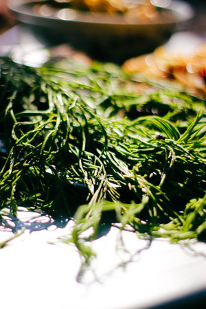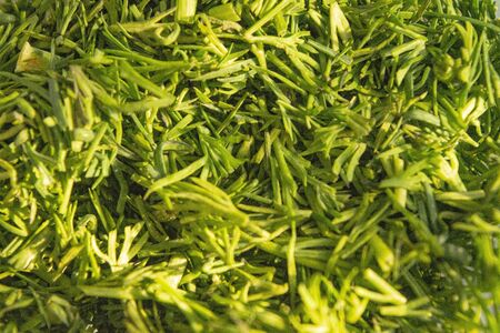 Tasty vegetarian sea food, fresh raw green salicornia or glasswort, pickleweed close up