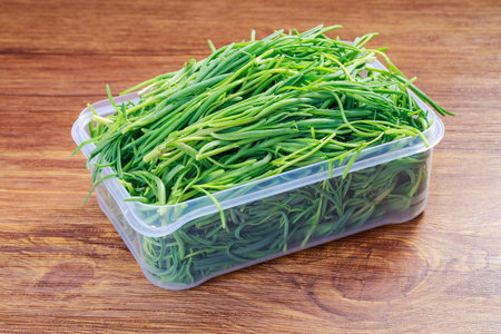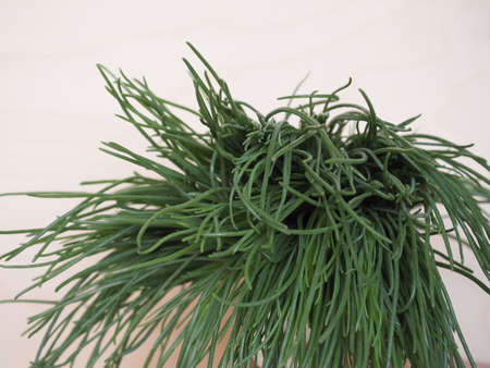 Fresh Agretti or barba dei frati, edible green plant. Saltwort, barilla plant or soda sauce.