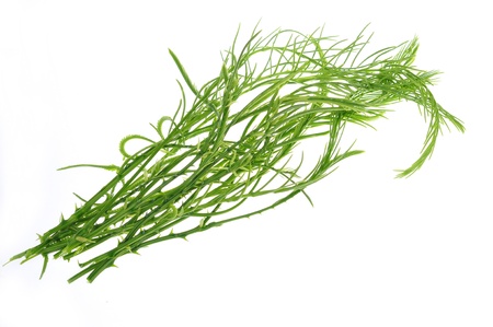 Top view fresh green dill on white background. Fresh dill texture. Vegetable seasoning background