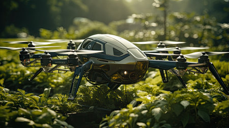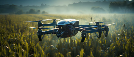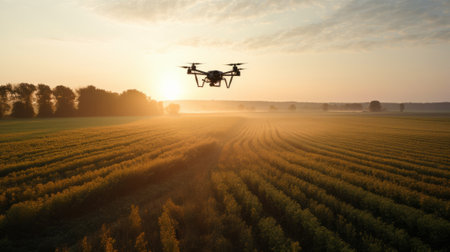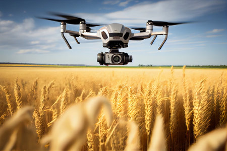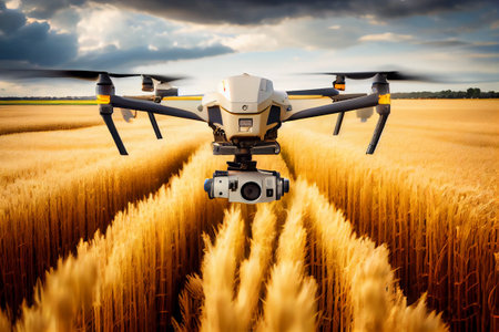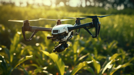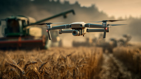 Farming with drone. agriculture and harvest technology innovation. Generative AI