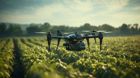 Drone monitoring crops and smart agriculture in a digital farming. Generative AI