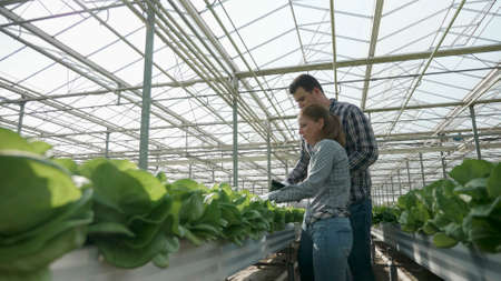 The farmers in modern hydroponic vegetable fields. Farmer working in hydroponic farm.